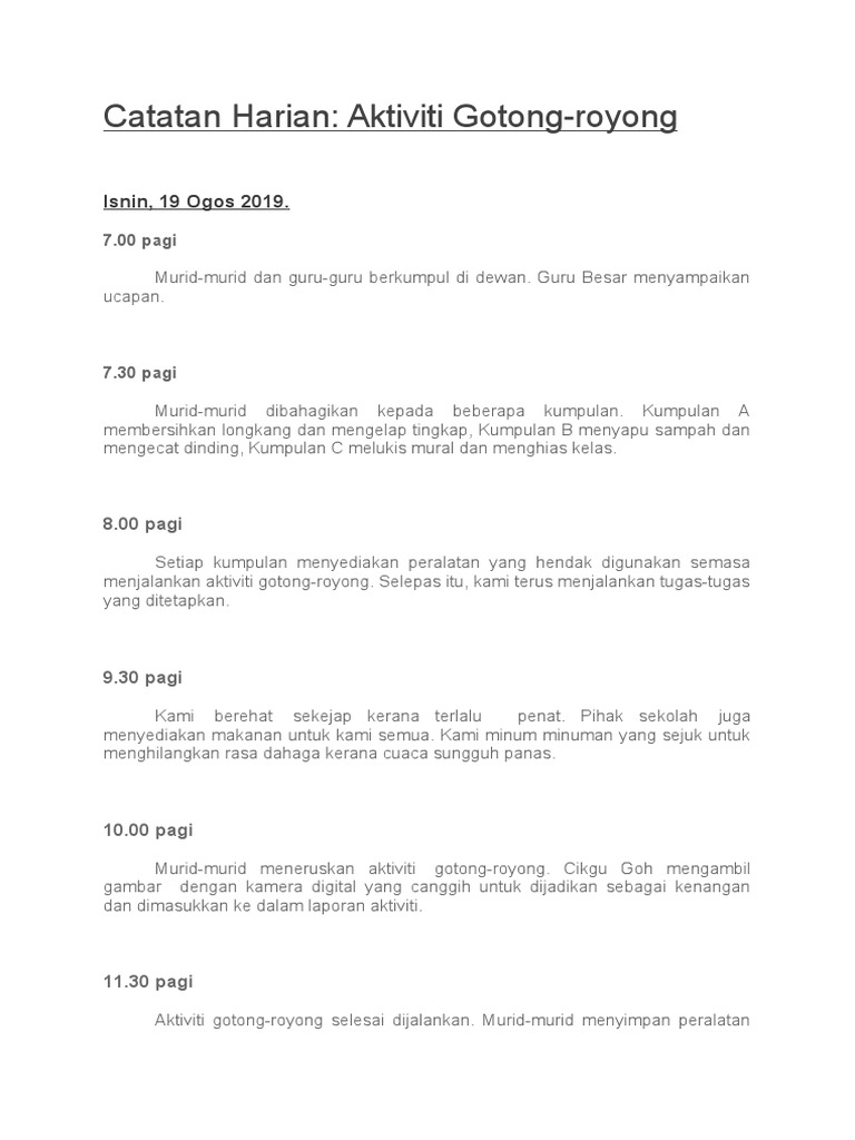 Aktiviti Gotong Royong Di Sekolah Pdf